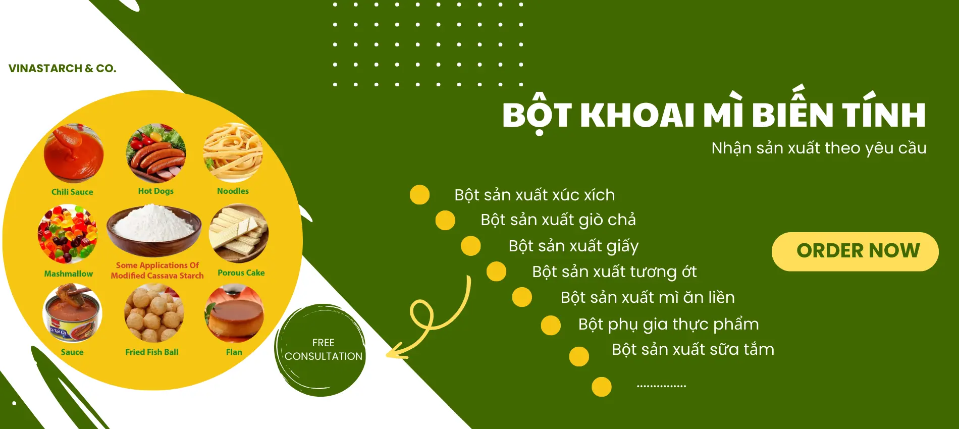 Vinastarch chuyên cung cấp các sản phẩm tinh bột sắn và các loại tinh bột biến tính khác. Dùng làm nguyên liệu phụ gia cho ngành sản xuất thực phẩm và ngành giấy, dệt may…
